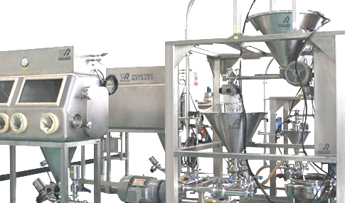 工作原理:用简单便捷的方法将固体粉料匀速地吸入到液体中,从而进行高效的混合。该工艺主要建立在文丘里管的基础上,固体颗粒与液体充分接触,从而使固体颗粒均匀地进入液体中。固体颗粒被不断吸入,每小时可向液体投入物料10~10,000kg。